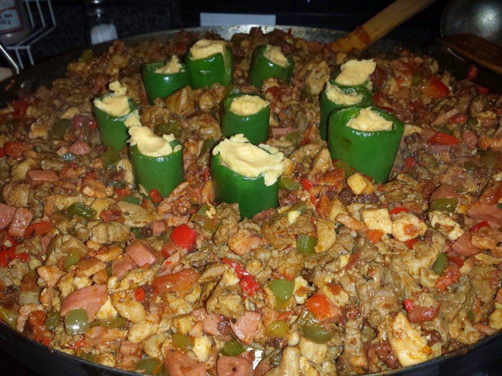 -1 pimiento verde y 1 pimiento rojo picado en pequeños cubos