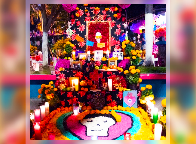 Destaca exhibición y concurso de altares de muertos en la plaza pública que llenará de color las calles para que las almas abandonen el más allá y caminen un par de días por el mundo, visiten a sus seres amados, disfruten del aroma de las flores y de sus platillos favoritos.